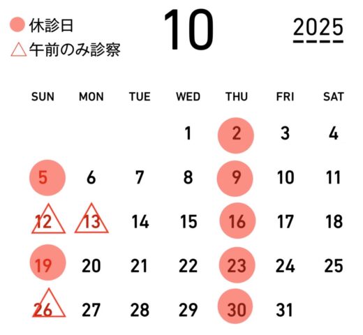 2025.10.01 | 10月 臨時休診のお知らせ |